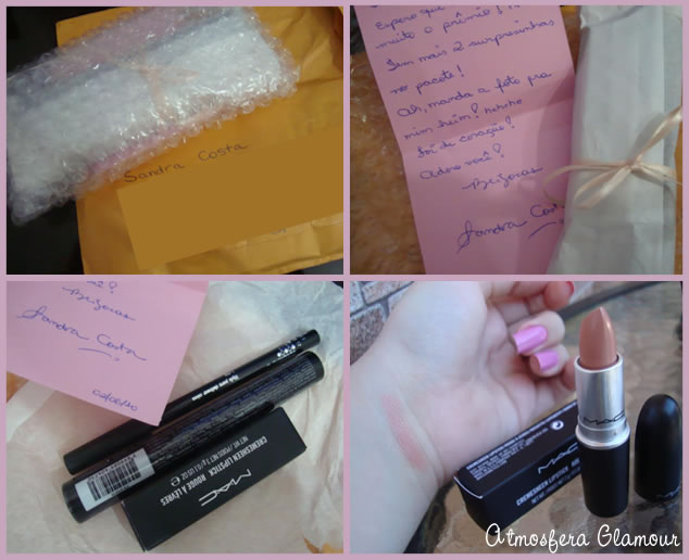 Eu quase tive um infarto quando recebi o e-mail dela falando que eu tinha sido sorteada. MEU PRIMEIRO FILHO MAC! Eu tenho outras coisas da MAC mas batom não né! E daí a Sandra, amorzinho do meu corê, super amiga, puta maquiadora, simpática demais, de bem com a vida, me mandou esses dias o prêmio! Chegou mega rápido e OLHA QUE LIIINDO QUE VEIO!